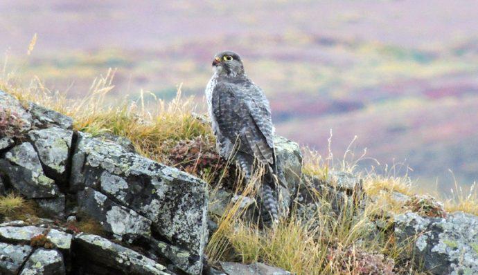 Gyrfalcon The largest falcons in the world, gyrfalcons live in Denali National Park and Preserve all year-round. They are powerful and elusive and most often feed on ptarmigan, ground squirrels, and snowshoe hare. Gyrfalcons lay their eggs in the abandoned nests of other raptors. Due to the close proximity of the two breeds, on rare occasion visitors to the park may see an aerial dogfight between a gyrfalcon and a golden eagle.