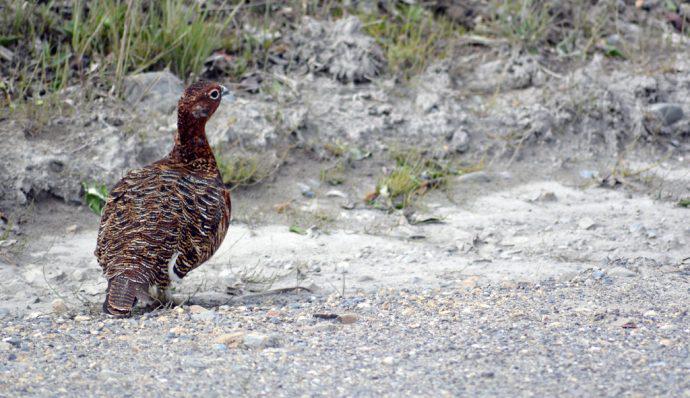 Willow Ptarmigan Alaska’s state bird, the willow ptarmigan, lives in Denali National Park and Preserve all year-round. They are members of the grouse family and though they are capable fliers, they spend most of their lives on the ground. You can see them all over the park, however, they typically aren’t found at the higher elevations. During the winter the willow ptarmigan live in flocks. They will blend in with their surroundings by changing the color of their plumage to white so they blend in with the snow, and their feathered feet help them walk on the snow’s surface. Willow ptarmigan can be noisy, particularly in the spring where you might hear them cackling and even growling. They can be extremely territorial and male willow ptarmigan will defend their territories against other males. Their natural predators include golden eagles as well as gyrfalcons.