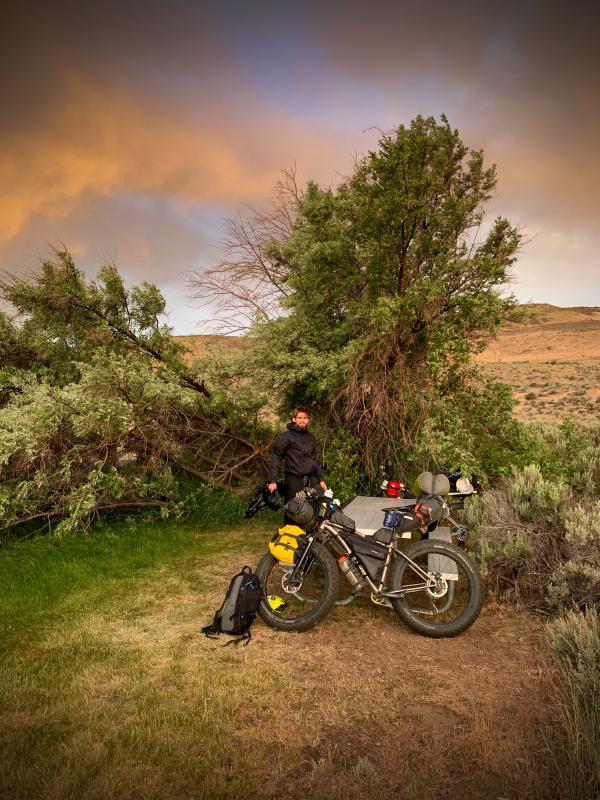 The alarm started beeping around 4:30AM, there was almost no change between when we went to sleep, and when we woke up. The wind still beat against the tent, just like a loose tarp on the back of a pickup truck. Tim and I got about three hours of sleep that night. We started the day around 5AM, packed up the tent and set off. Day three was set to be the hardest day of the trip, and we were starting to get concerned about if we would be able to make the necessary mileage for the day. Not only were we riding 30 miles up a sandy hill, but we were about to ride with a 40MPH headwind, and a bad knee. We fought the wind all day, and walked about 20 miles with the bikes. Sand whipped into our eyes, and the wind felt like something from another world. All in all, we only made it 40 miles on day three, and ended up getting a hotel in Ellensburg, 30 miles or so before where we had planned to camp.