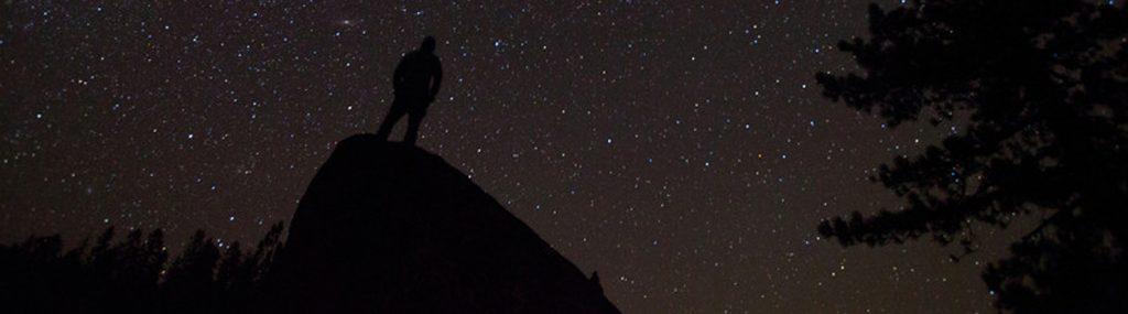 evening drew near, the trees parted before us like a stage curtain, and we were met with the full face of Half Dome. Dark clouds framed the monolith as the tip of the rock formation was bathed in a warm amber light. Time stopped as we all reached for our cameras, mentally pinching ourselves at our good fortune in catching it at this particular moment as the sun began to set. From the valley floor, Half Dome, along with the other towering faces of rock, is indeed impressive. But the scale is hard to imagine. From such a low perspective, the enormity of these rocks gets lost as they reach up into the sky. And from our new campsite, we could see the expanse of the valley as well as the mid point of Half Dome. Even better? We had it all to ourselves. Setting up camp was a slow process, as none of us could bear to take our eyes off the view. After dark, a close study of the rock face across the valley revealed life in a vertical world. Tiny pricks of light—the headlamps of climbers—shone out. We assumed they were bedding down on port-a-ledges, tents for camping on a vertical wall. Chris, the big climber in our group, who had in fact scaled Half Dome before, explained that when the rock face sits right in the sun, climbers bake during the day, and their hands become too sweaty to hold on to the rock. So night time is climbing time. As we ate, we watched the pinpoints of light work their way up a small section of the wall. Chris continued to tell tales from his climbing past. He pointed out different routes the climbers might take. For a while, it felt like we were on the wall there with them.