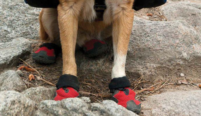 If you’ve never asked your dog to wear dog shoes, you are in for a real treat! Without fail, a pup’s first time in booties is a comical experience as she adjusts to the foreign items on her paws. Entertainment aside, dog booties can be a crucial piece of gear for your canine’s comfort and safety. Just like hiking boots protect our feet, the goal of dog shoes is to protect your pet’s paws from abrasions, tears and cuts. Many long-haired dogs require them in the winter to prevent their fur from gathering too much snow. Once this snow balls up and freezes, it creates sharp ice crystals that cut your dog’s sensitive pads. You will know this is happening when you see your dog’s paw prints leaving spots of blood in the snow. However, not all dogs experience this, so it is best to experiment with your pooch first. Many dogs struggle with rocky terrain in the summer. Sharp roots, sticks and boulders can tear up your dog’s feet, leaving their paws sore and uncomfortable. Tally and I learned the hard way after eight years of hiking together. We were returning from our 23rd 14er summit and I realized she had a severe limp. Upon investigation, I learned that she had ripped off a large portion of her paw’s pad. She was in so much pain that I finally opted to carry her 60-pound-body down the mountain myself. Obviously, the situation was less than ideal, but I learned my lesson: dog shoes. It may take some trial and error to find a pair of booties that your dog doesn’t hate and that don’t slip off her paws. But, once she adjusts to her new footwear, she will be grateful for the protection.