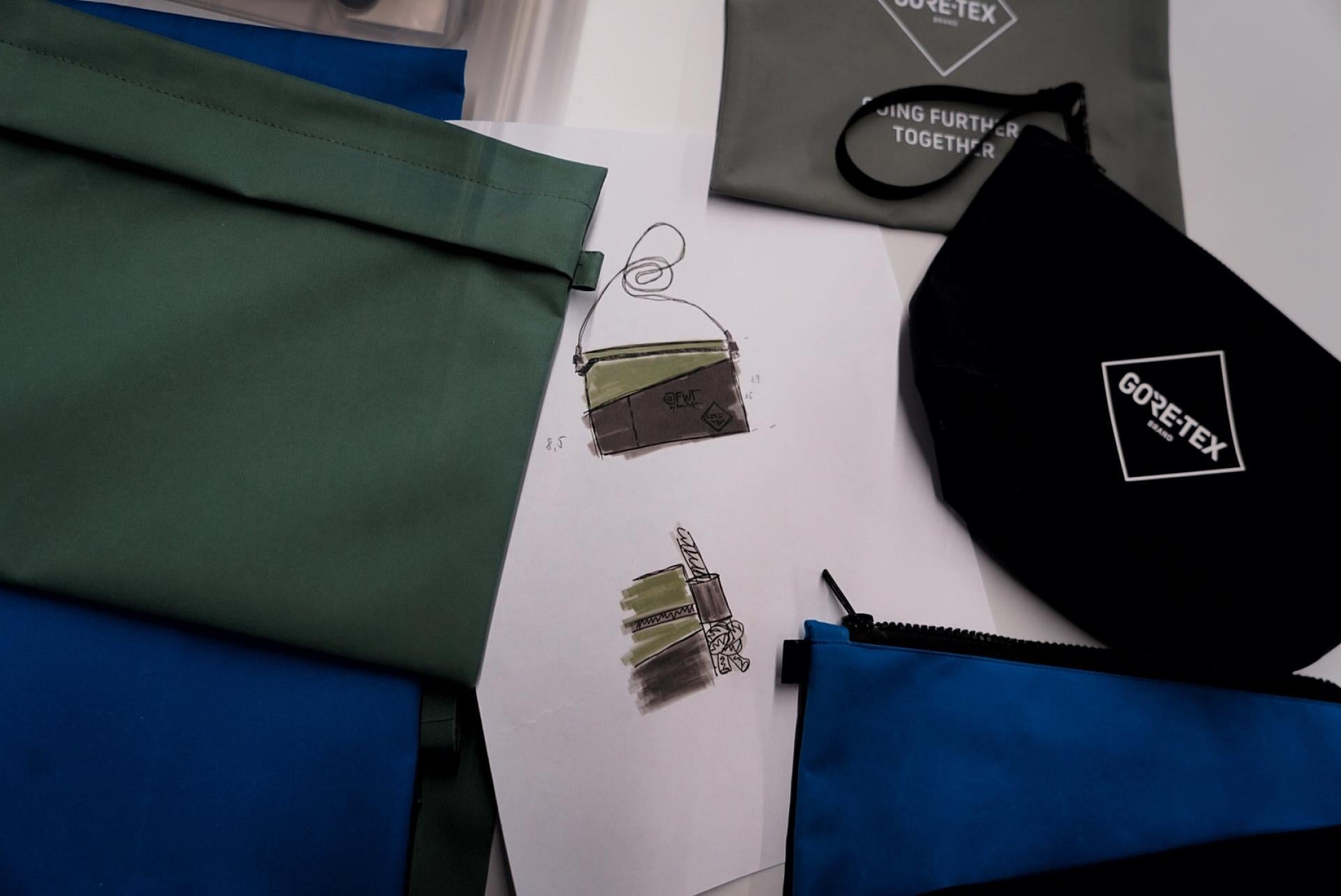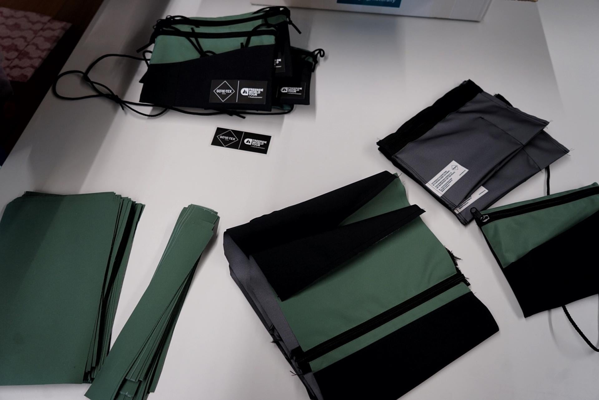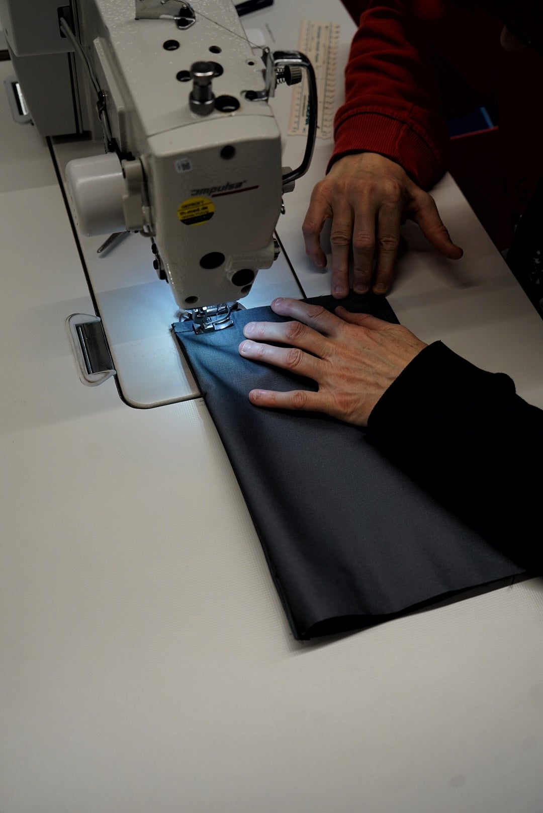 Anna Maria used this sketch to create a prototype. This meant that she now knew the main production steps for our bag and could think about which employee would be best suited to which step. The rolls of GORE-TEX fabric that were delivered by us were laid out and the individual layers cut to size using a pattern.