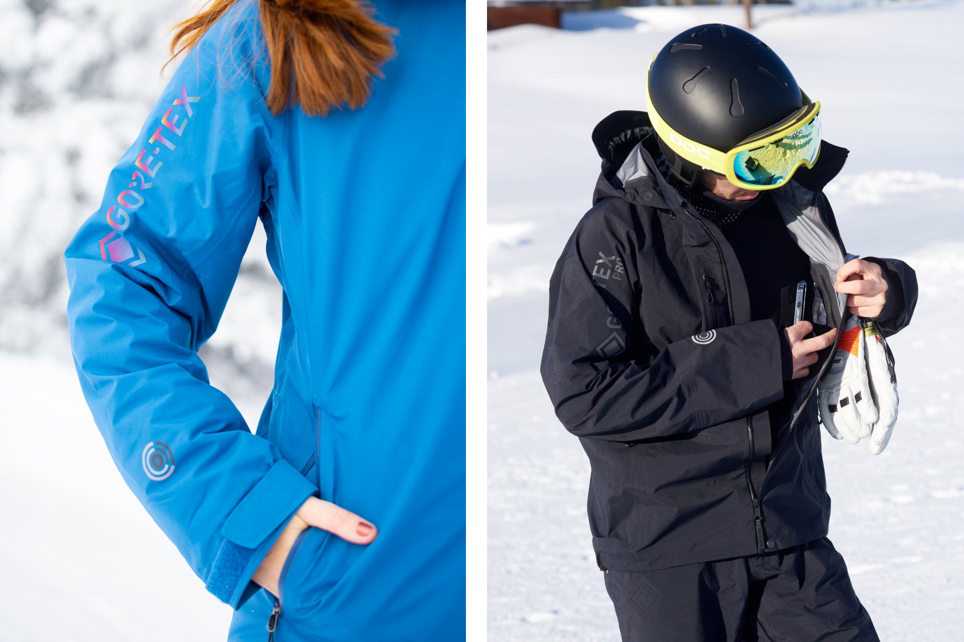 Wie schon erwähnt, sind Skijacken und -hosen in Sachen Ausführung und Passform von Hersteller zu Hersteller unterschiedlich. Es kann sein, dass dir bei einem Hersteller die Jacke in Größe L sehr gut passt, bei einem anderen Hersteller aber die Größe M besser ist. Skijacken sind meist recht eng geschnitten und sollten nicht zu locker sitzen; sonst können kalte Luft und Schnee leichter eindringen. Außerdem solltest du darauf achten, dass du genügend Bewegungsfreiheit hast und deinen Oberkörper und deine Schultern ohne Einschränkung bewegen kannst. Je nachdem, wie viele Schichten du unter deiner Skijacke tragen möchtest, ist vielleicht eine dünnere Hardshell-Jacke besser geeignet als eine gefütterte Skijacke.