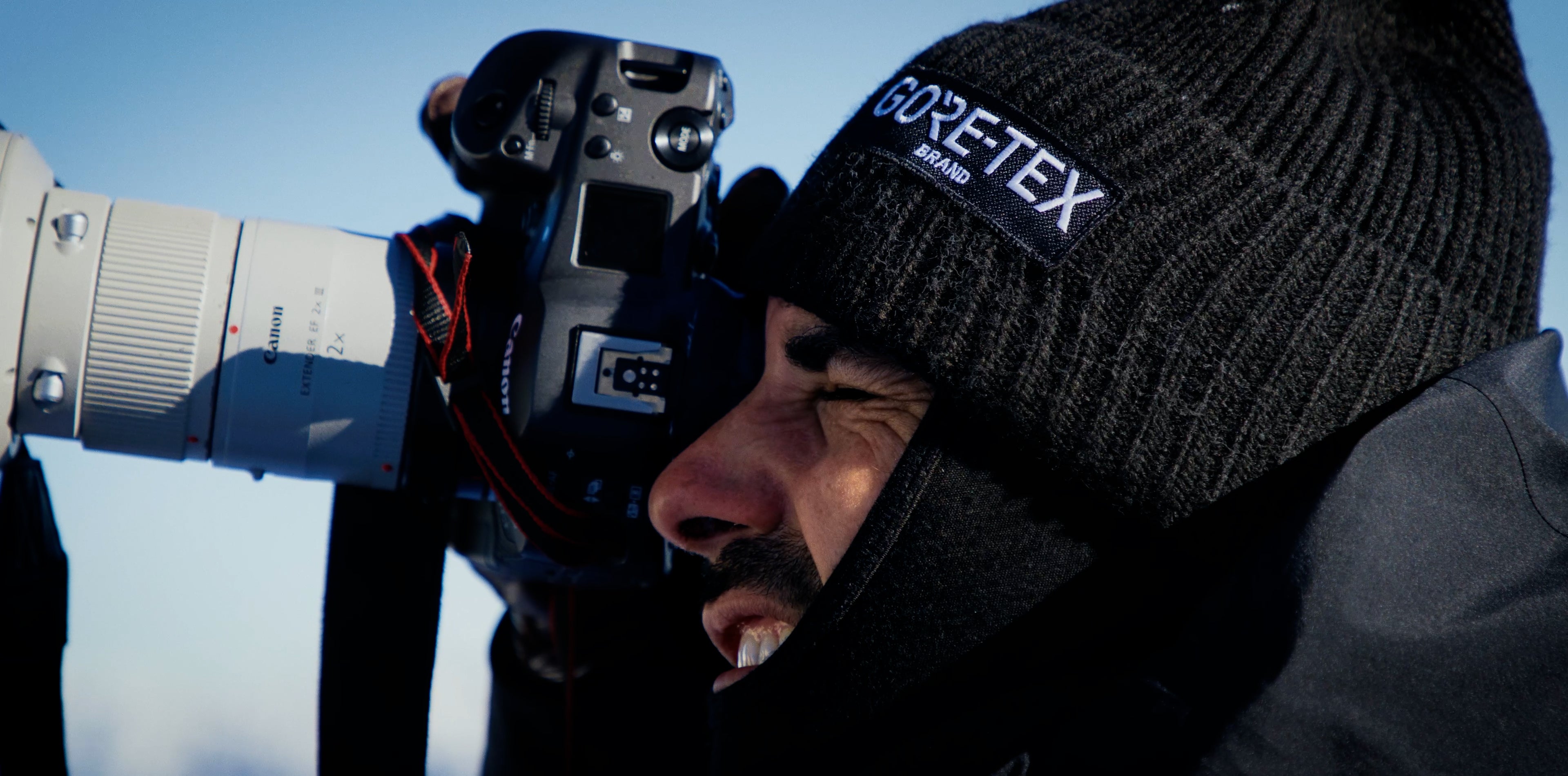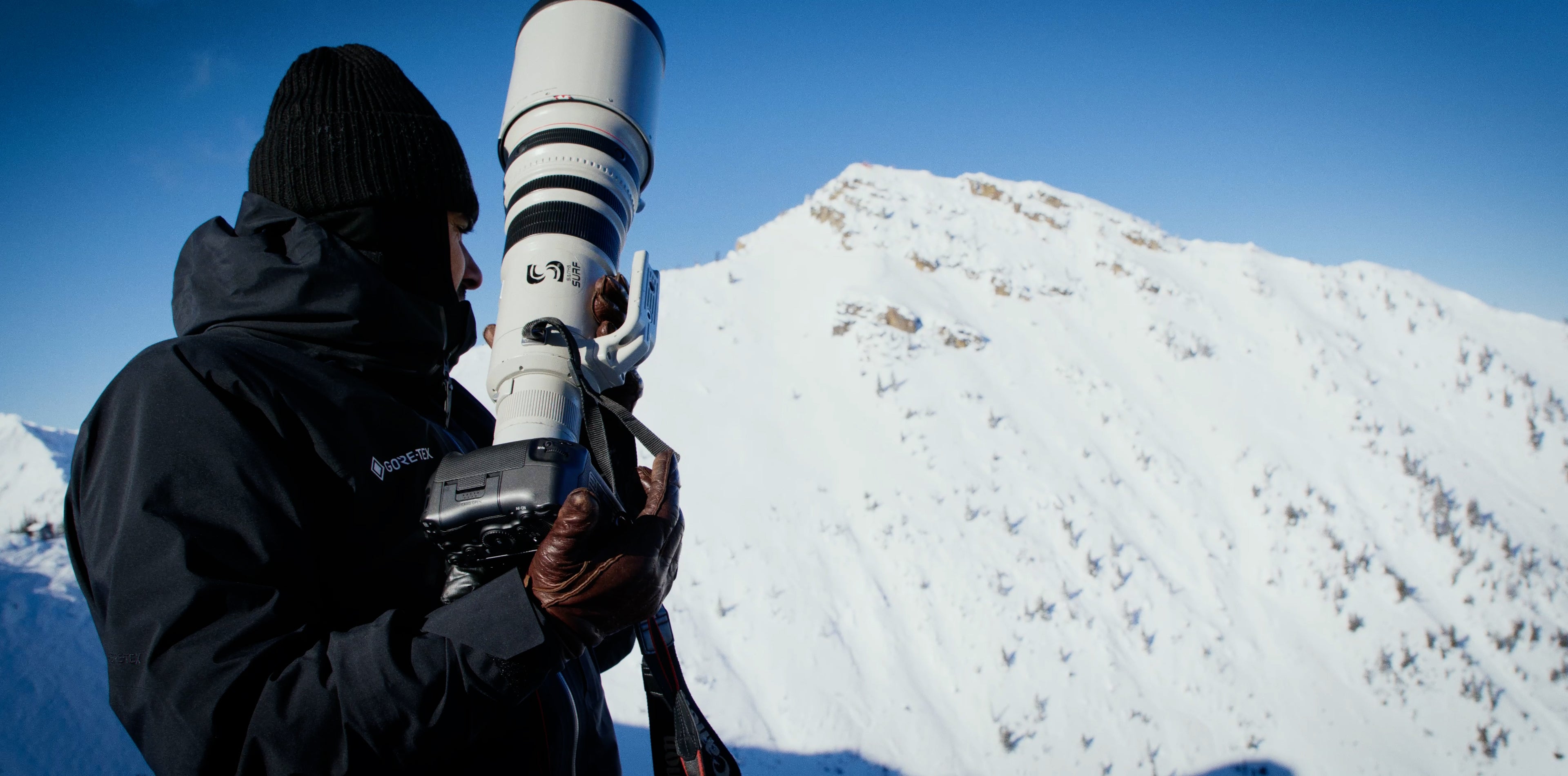 „Beim Fotografieren trage ich immer nur sehr dünne Lederhandschuhe, weil ich damit meine Kamera gut bedienen kann. Bei sehr schlechten Wetterbedingungen oder wenn ich in den Schnee greifen muss, ziehe ich mir große GORE-TEX Fäustlinge über. Auch die sind so atmungsaktiv, dass jegliche Feuchtigkeit schnell trocknet.“