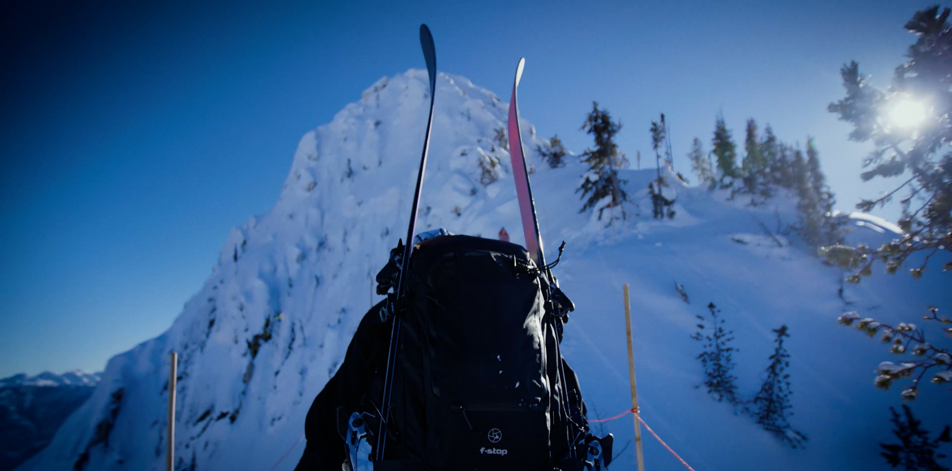 „Normalerweise steigen wir zu Fuß oder mit Tourenski mehrere Stunden steile Hänge hinauf. Das ist echt harte Arbeit. Auf dem Rücken trägst du einen schweren Rucksack mit der Ausrüstung und allem, was du sonst noch den Tag über brauchst. Du hast immer Zeitdruck, weil es immer noch etwas zu fotografieren gibt, bevor es losgeht.“