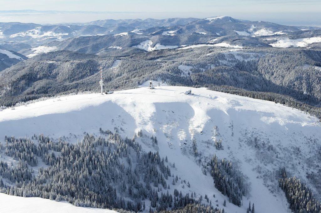 Der mit 1493 Metern höchste Berg Baden-Württembergs ist – nach alpinen Maßstäben – ein kleiner Buckel, kaum der Rede wert. Aber da der Feldberg eben der Höchste der Region ist, bekommt er die volle Wetterladung ab. Das Klima kann rau werden und die größte je gemessene Schneemenge liegt bei 350 cm. Die Zugspitze ist ziemlich genau doppelt so hoch, deren Rekordschneehöhe liegt bei 780 cm. Ok, mehr als doppelt so viel. Dafür kann die tiefste Temperatur mithalten: minus 30 am Feldberg, minus 35 waren es mal auf der Zugspitze. Wie auch immer: Am Feldberg kann man als Skitourengeher schon was machen, zur Not geht man die Hänge eben fünfmal, wie man das in den Bayerischen Voralpen oft auch machen muss, um auf seine Trainingsmeter zu kommen. Hier wie dort ist das Mitführen einer Lawinennotfallausrüstung angesagt. Die Wechten am Feldberggipfel sind enorm, es sollte keine abbrechen, während man im Powderrausch das Zastler Loch hinunter pflügt. Bei klarer Luft hat man vom höchsten Schwarzwälder Berg eine spitzen Aussicht auf die Alpenberge mit ihren spitzen Gipfeln. Das Panorama reicht von der Zugspitze bis zum Mont Blanc. Am Feldberg ist alles etwas runder, flacher. Man merkt, dass der Schwarzwald schon etwas abgenutzt ist. Er hat halt schon eine Milliarde Jahre auf den Buckeln, während der alpine Nachbar im Süden mit 135 Millionen gerade in die Pubertät kommt. Kein Wunder, dass dort noch etwas mehr geht.