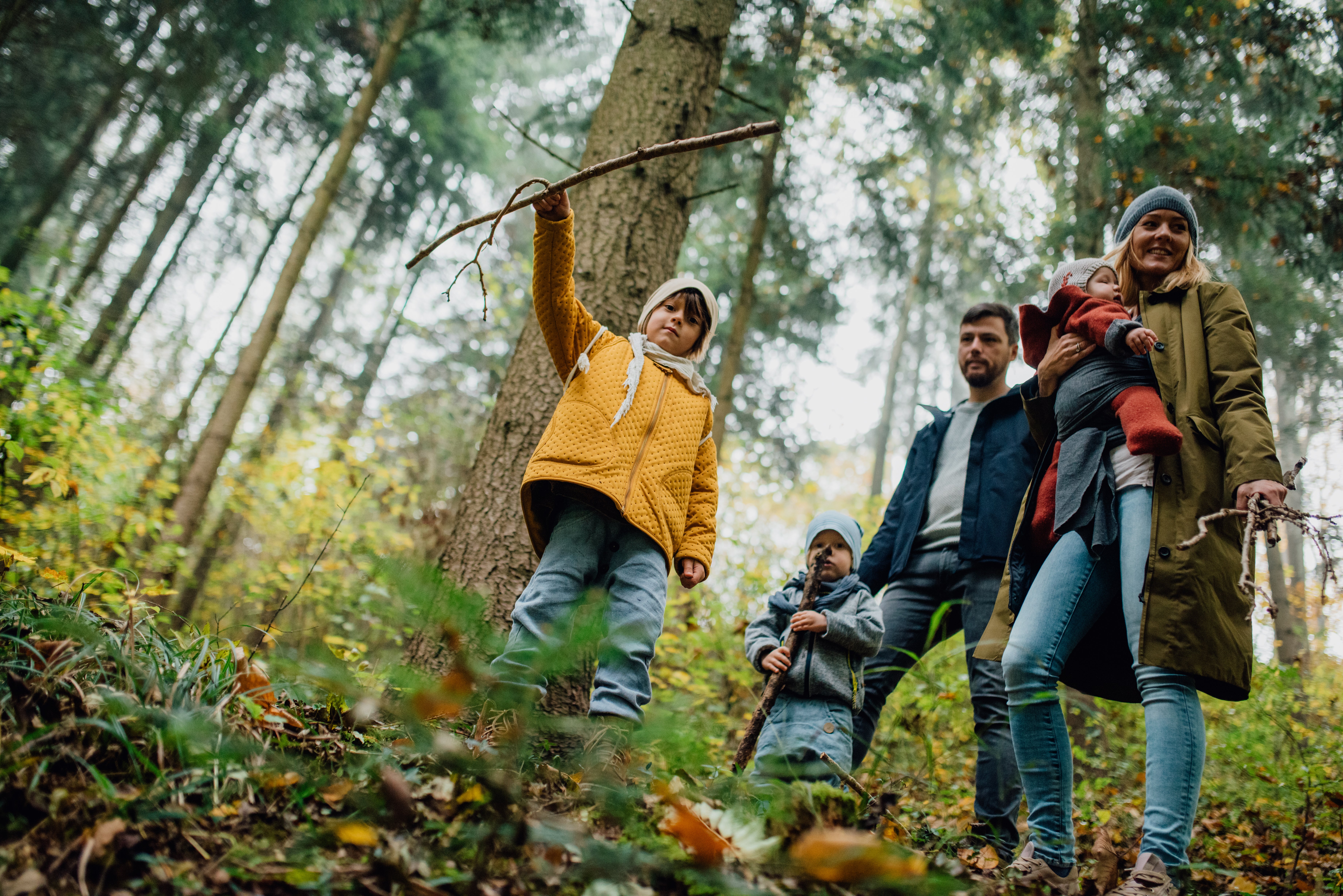 Im Wald sprangen Maxi und Niklas in den kleinen Bach, durch Pfützen und in den Matsch. Dank ihrer GORE-TEX Schuhe von Superfit blieben ihre Füße dabei trocken und immer gut geschützt. Maxi, der Ältere, war mit seinen TEDD Schuhen von Superfit überhaupt nicht mehr zu bremsen. Niklas, der jüngere der beiden, musste sich erst einmal an den Gedanken gewöhnen, dass er jetzt mit seinen ULI Schuhen von Superfit in Pfützen hüpfen darf ohne nasse Füße zu bekommen. Damit auch die Eltern die Natur in vollen Zügen genießen konnten, statteten wir sie ebenfalls mit GORE-TEX Schuhen aus: Sandy mit dem ESSENCE Sneaker von Legero aus und Toni mit dem Van Modell von Llyod.