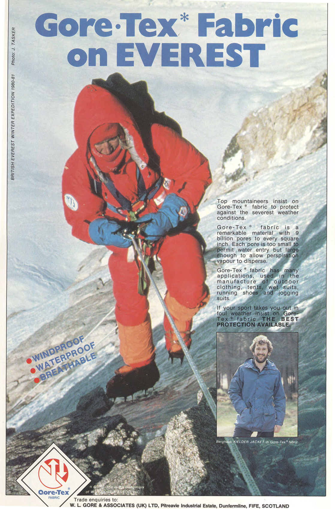 3 years earlier, on the other side of the North Atlantic, Bill and Vieve Gore opened a small business from their basement in Delaware. Yet it was their son Bob Gore in 1969 who discovered ePTFE - a versatile polymer with properties that revolutionised the outdoor gear market.