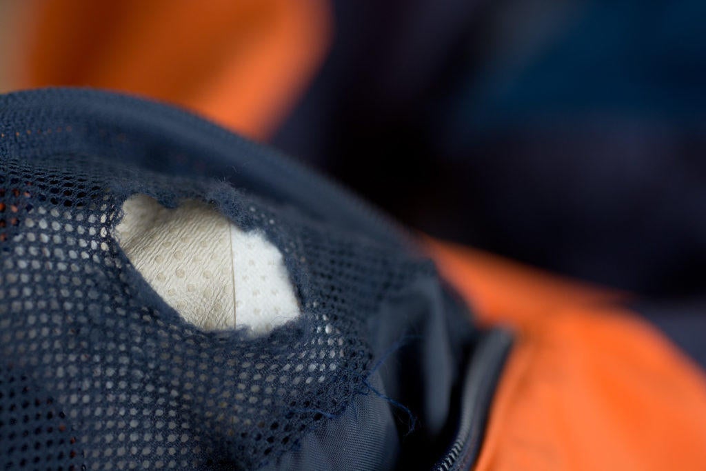 Together with GORE-TEX product specialist Chris Eisenmann, Olaf and his colleagues from the ALPIN editorial team put the jackets through their paces in Gore’s laboratories. As a self-confessed product fanatic, Chris was nearly out of his mind with excitement when he first got his hands on the jackets. Getting to see such an incredible variety of jackets manufactured over three decades is not something that happens every day, not even to someone who has been at Gore as long as Chris. “Wow, this construction actually isn’t allowed any more. It doesn’t align with the instructions we give our brand partners to ensure that our products do what they claim they can do,” Chris said as he examined the hood of a well-worn Salewa jacket. “But 30 years ago a lot of things were different, although they probably made good sense at the time.”
