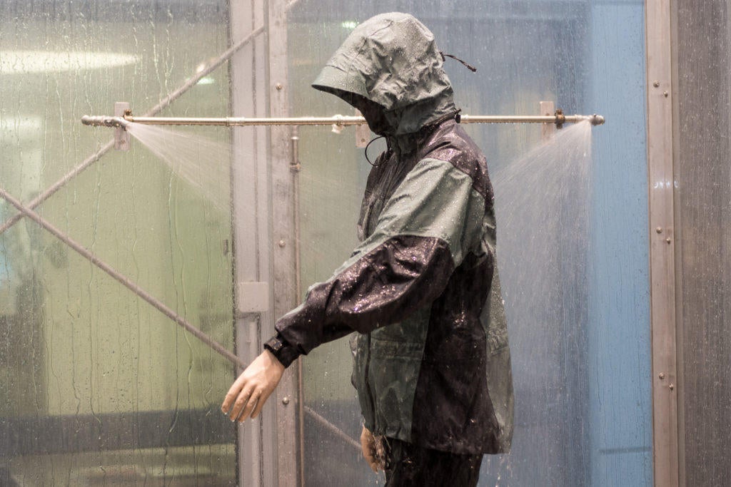 Stefan Marschar, the “rain man”, let rain come down in buckets, gave rise to raging storms and pressed water into each and every fold in the fabric: “In the rain room I put the jackets through two different rain scenarios. This allows us to see what kind of conditions the jackets can support and also where and when water starts making its way into the layers of the jacket.”