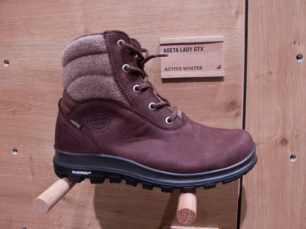 Hanwag’s Aoeta GTX is all about. Instead of a Vibram outsole, this boot has a rubber blend sole by Michelin for ground contact. You know of this from automobiles so it should of course work. At Vibram, the pizza oven functions quite splendidly at the ISPO. In contrast to the brand’s products that are tough and durable, the pizza was crispy and didn’t keep very long! Italians aren’t just specialists in footwear outsoles.