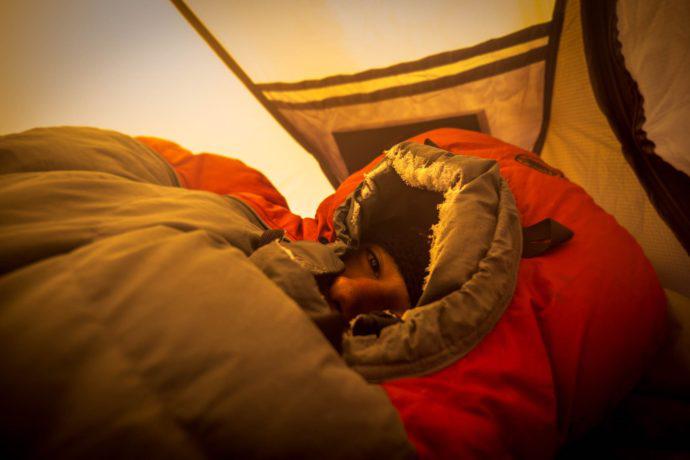 Tamara: Pull on fresh clothing and then jump in the sleeping bag. Stefan: Most preferably next to an oven in a cosy hut! On my expeditions, a very good down sleeping bag and a sturdy tent are the only ways to defy tremendous cold.