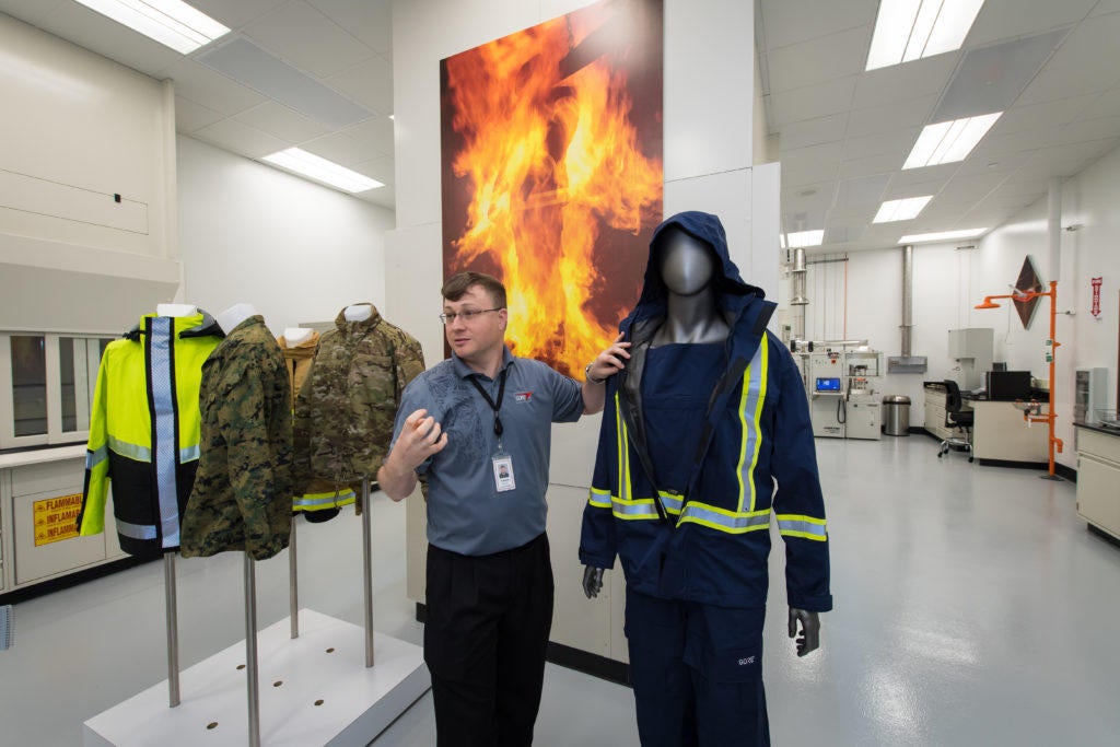 But as if that’s not enough: Likewise newly opened is the ‘Heat and Flame Lab’. Many perhaps aren’t aware of this, but firefighters and police officers also use products from Gore for their protection. Of course, firefighters are less concerned about protection from rain and more concerned when it comes to heat and flames. And, to that end, Gore has put together a lab to test the heat resistance of the fabrics and materials. Here, associates can simulate flash fires or smouldering fires and predict how the fabrics will react -- for the fire departments an important matter of survival. In addition, fire-fighting suits can be tested in the Environmental Chamber, because that material should not only be heat resistant but also breathable. Otherwise, firefighters would never be able to focus as needed on their fire-fighting work.