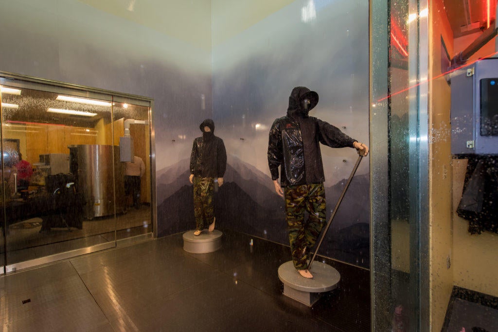 In the Rain Room, technicians can set the conditions to various rain situations, from drizzle to ‘standard’ steady rain to heavy downpours. Next to the chamber are technical measurement devices that can run thorough fabric and materials tests. Matt Decker, director of the Comfort Group at Gore, says this Biophysics Lab can simulate more than 95 % of the prevalent climates on the earth.