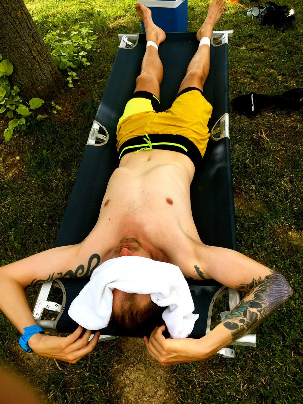 After two weeks I was in Croatia and well into my stride. I was running like clockwork, in a straight line through the monotonous countryside. It had become something of a ritual for my father to wait for me at the side of the road, about every five kilometres. He would set himself up with food and drink for me, and try and cool me down any way he could, while the film team looked on, watching our every move. It became a test of endurance.