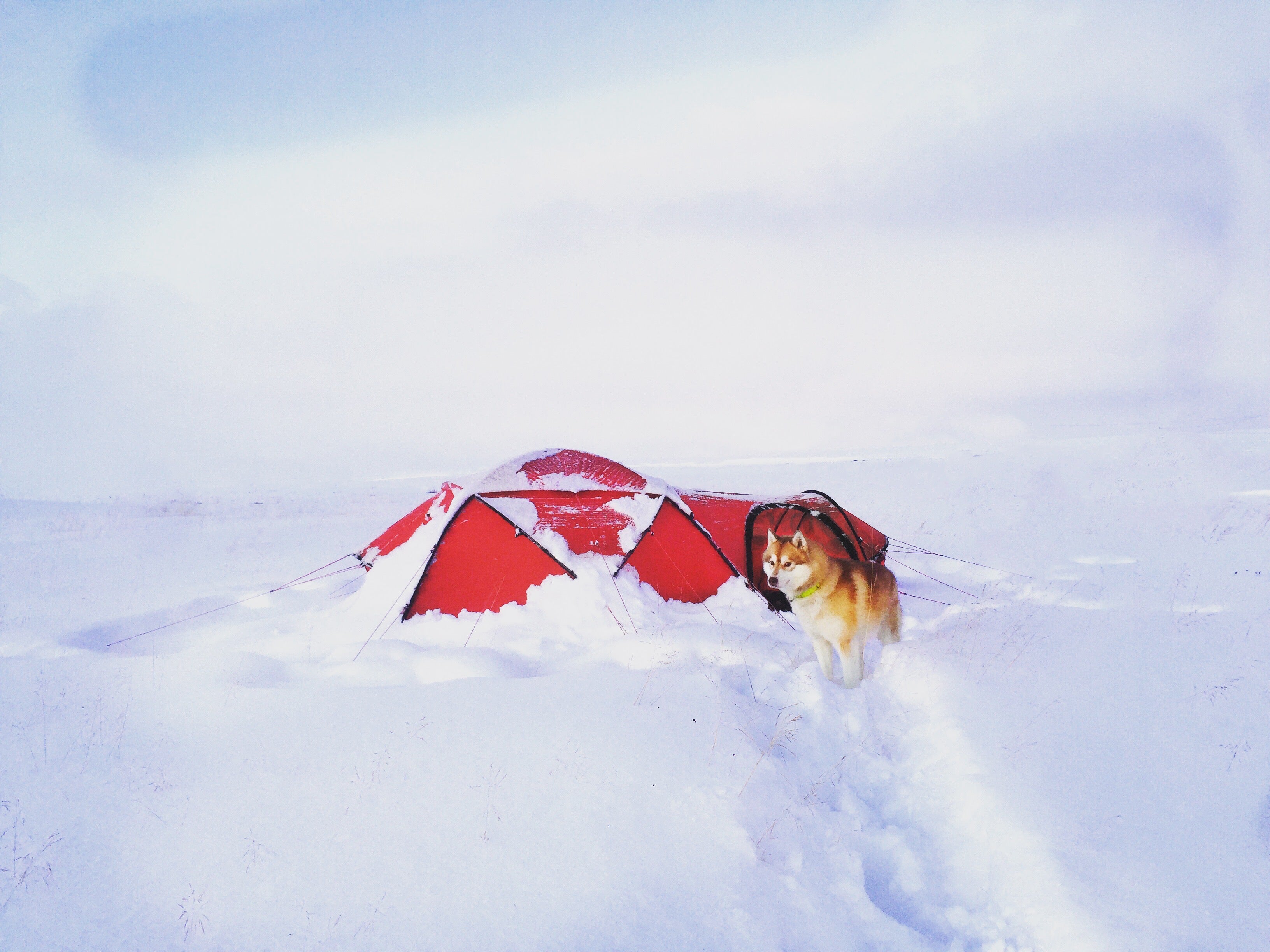 A situation I won’t ever forget was the polar storm at the beginning of the expedition. We got hit by the storm, and the snow blanketed the huskies right away. I kept three huskies inside my tent because they were not feeling comfortable, even though they have super thick fur. The storm was loud, and it was impossible to see further than a few meters because of the snow whirling around. The wind was about 22-24 m/s strong. It was honestly the worst weather I have ever seen or felt. The tent had a tiny hole and snow got pressed into the tent. I was cold, but all I could do was wait for the storm to pass. After opening the tent, all I could see was snow; everywhere snow. But the huskies were safe and happy behind a snow wall. The polar storm in Finnmark was so strong that we were stuck there for three days. Thankfully the equipment was good enough to survive. I checked on the dogs often, and all I could see was their heads. But it was okay because the snow protected them. Every hour I shuffled snow; otherwise, they would have been laying too deep. I was just waiting for the storm to pass so we could go further.