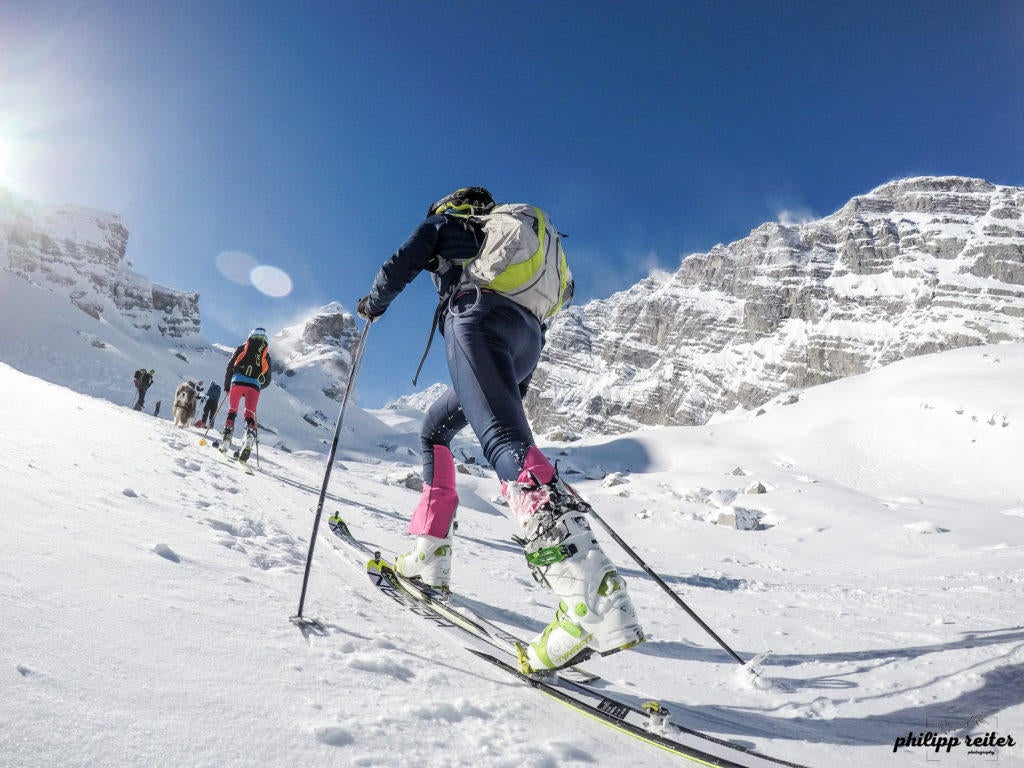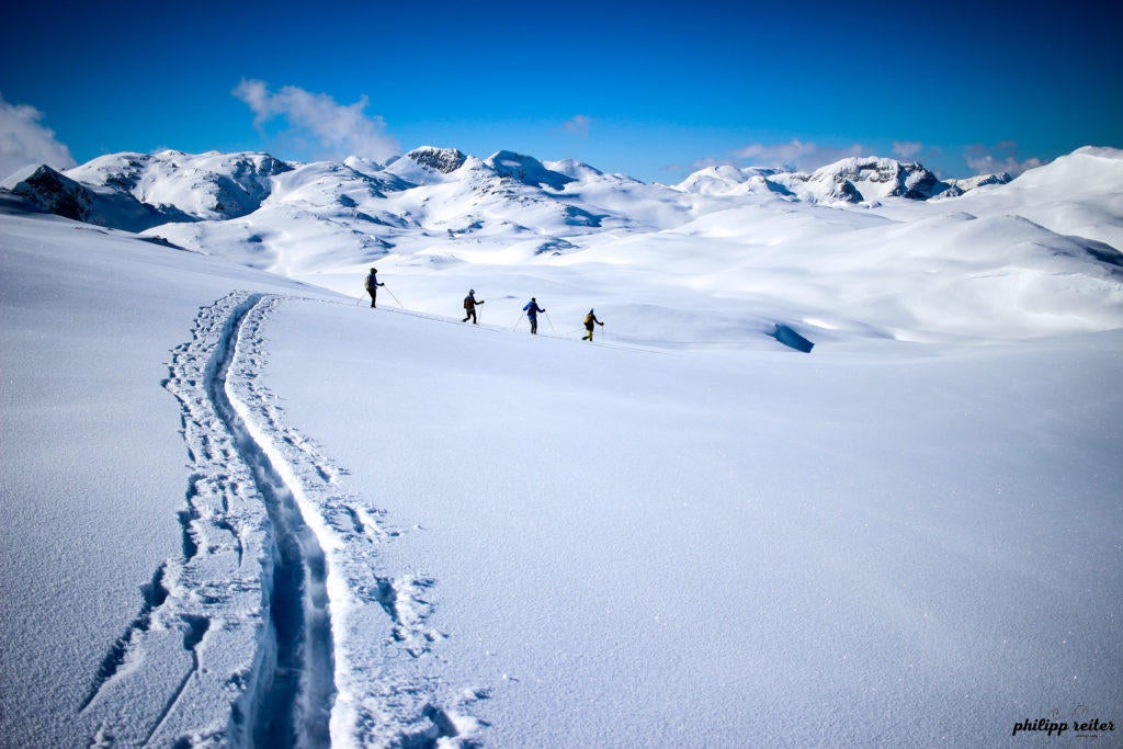 Can you ski? If you can’t, you probably can’t really imagine what I’m about to say ;-) If you can, take off your high-end boots, put away your lightweight skis and get rid of your carbon poles! 47 years ago a group of 4 Austrians set off from Rax (near Vienna) to cross the entire mountain range of the Alps on skis, ending their incredible trip in Nice, on the Mediterranean coast. All they had was skis that were not much better than cross-country skis, lace-up leather boots and heel-lock bindings that were no more than a metal clip – the harder you stepped into it, the more stable it was. Also, they didn’t have any GORE-TEX jackets protecting them from the elements, only scratchy pullovers made of sheep’s wool. Just thinking about this scenario and imagining spending day after day in the snow, perhaps even the occasional rain shower, makes my skin feel cold and moist.