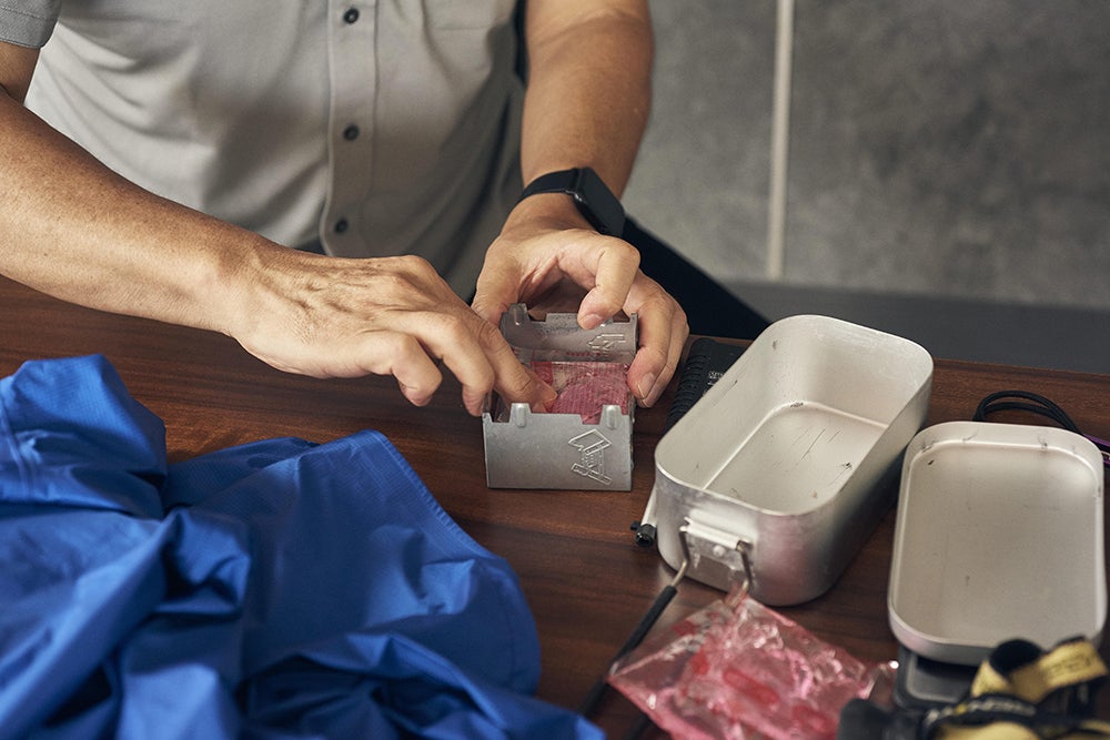 まず、ご飯を炊いたりパスタを茹でたり、おかずを作ったり。1つでさまざまな調理が可能なメスティン。和田さんは普段、その中に固形燃料とストーブ(燃料を燃やす台)を収納しています。