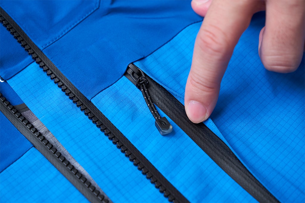 「ハイブリッド ライエル ジャケット」は、ハードコアな機能が求められるシーン以外にも、幅広く対応できる汎用性の高さがキーポイント。これは開発段階でも特にこだわった部分で、それはポケットの配置にもよく表れています。