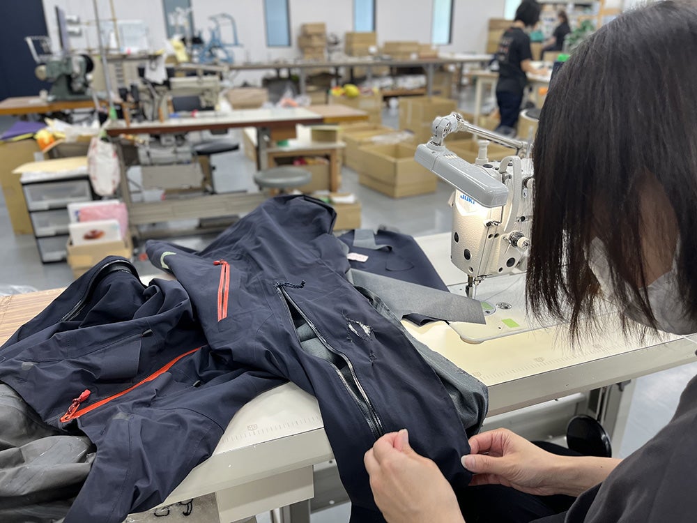 「アウトドアメーカーとして製品を自分たちの手で直す以上、いちばんに考えるのは、やはり見た目ではなく機能をいかに回復させるかということ。特にレインウェアなどでは、修理は可能でも機能性を担保できないという場合がどうしても発生します。その場合には、レインウェアとして直すことはできませんとお伝えした上で、修理をするかどうかを選択していただく、という形を取っています」(角南さん)