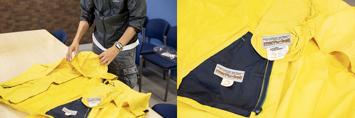 「GORE-TEXの製品でも、撥水性が落ちたりシームテープが剥がれてしまうのは、生地に皮脂が付いたまま放置したり使い続けたことが原因の場合がほとんど。そうならないよう、着た後は機能素材用の洗剤で洗っていただき、撥水材で仕上げていただければ、次に使うときにも良い状態で長く使うことができるでしょう。この古いストームクルーザー(下の写真)も、私が入社当初に購入した愛用品。大切にしている思い出の1着です」(角南さん)