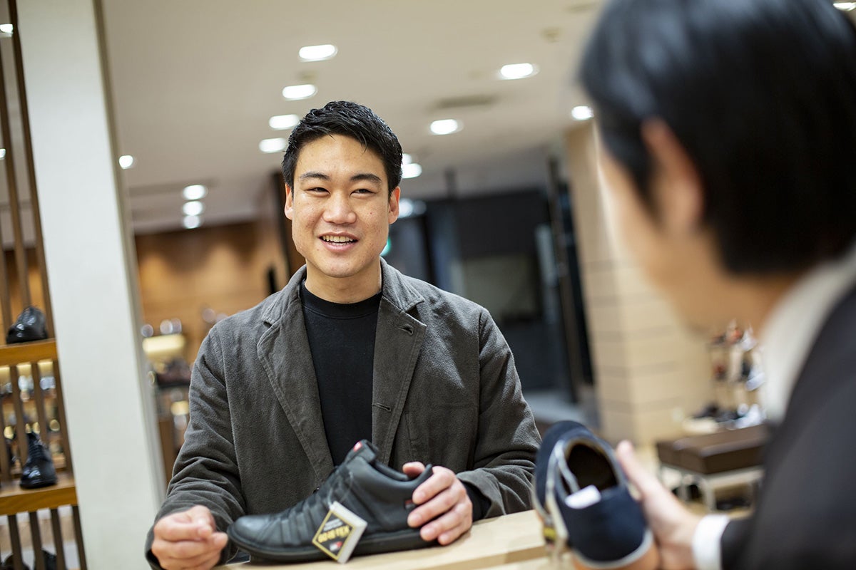 そう答える谷口さんは、100名を超えるスタッフが在籍する紳士靴売り場において、多くの顧客にシューズを販売。膨大な種類の靴を扱うセールススタッフは、仕入れなどを行うバイヤーとチームを組んで販売を行っているのだといいます。