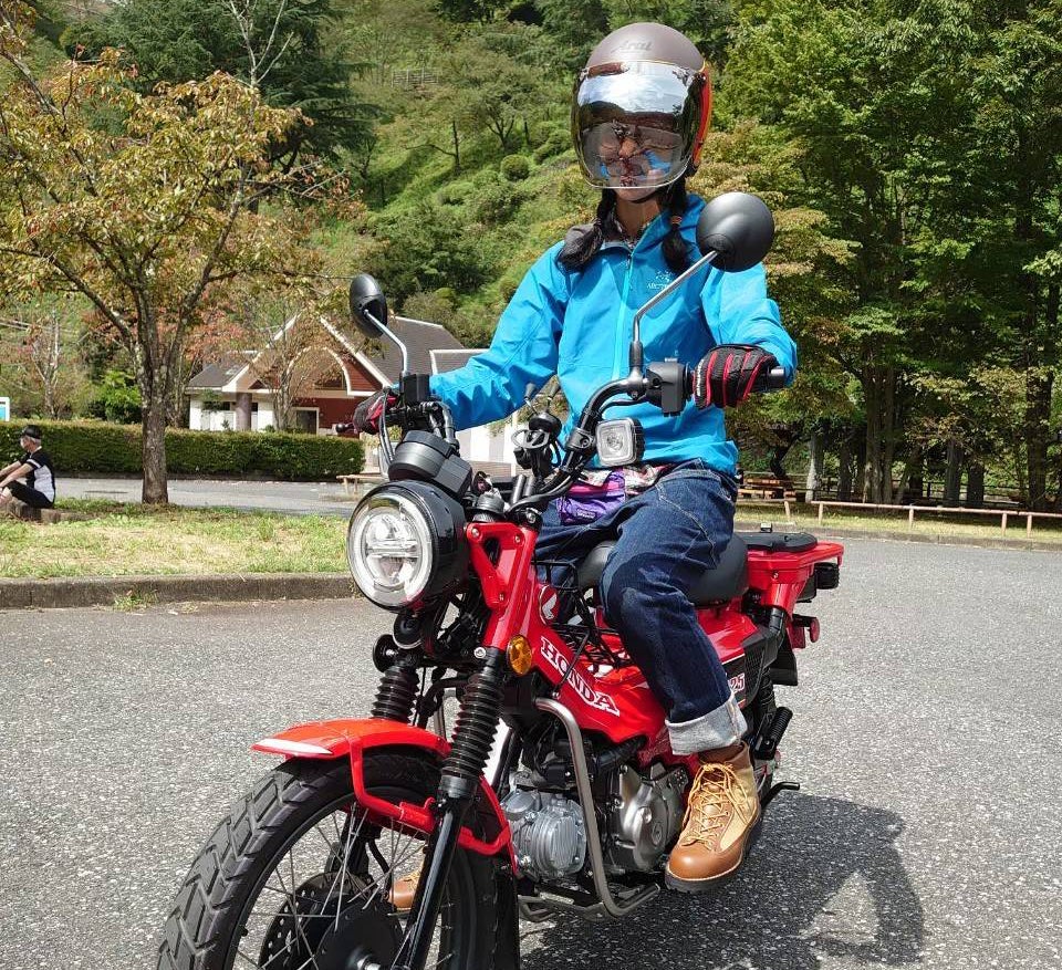 「もうひとつは、私自身も普段から愛用しているアクの『スーパーアルプ ヌバック GTX』。これは、ライニングにGORE-TEX ファブリクスを使ったトレッキングシューズなんですが、歩きやすさ、安定感、グリップ力、そしてフィット感が良いので疲れにくいのが特徴です。蒸れにくく、外側の素材にヌバックレザーを使っていて丈夫。愛車(ハンターカブ)でのツーリングの際にも活躍しています」
