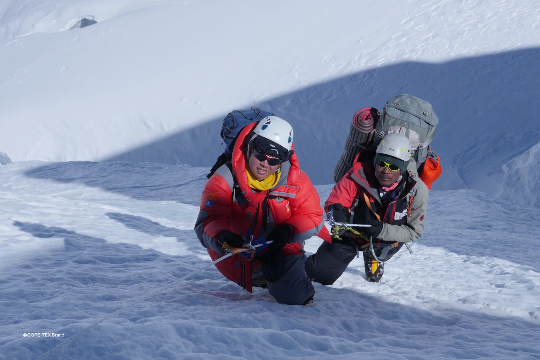 「私は高所になるにつれて強くなっていくんです。酸素飽和度がシェルパより高いので登るペースが落ちない。雪山では汗をかかないペースに抑えて登るべきだと言われることもありますが、自分が気持ちいいと感じるペースで登りたいんです。当然、汗をかいてしまうこともありますが、ウェア内が汗ばんだりしないのは、GORE-TEX ファブリクスの透湿性のおかげなのだと実感しています」