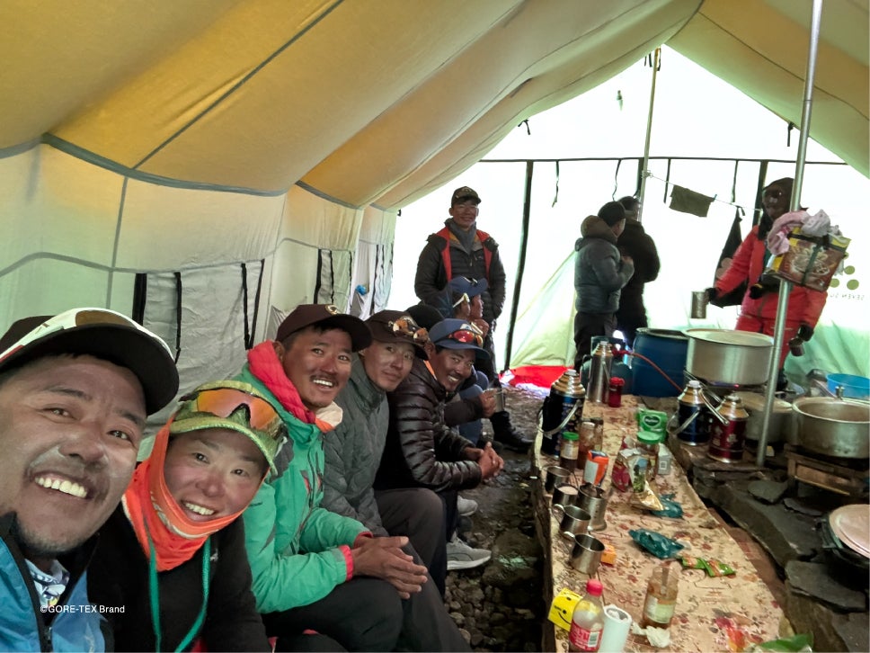 2024に登ったシシャパンマ。キッチンテントにて、シェルパたちと。