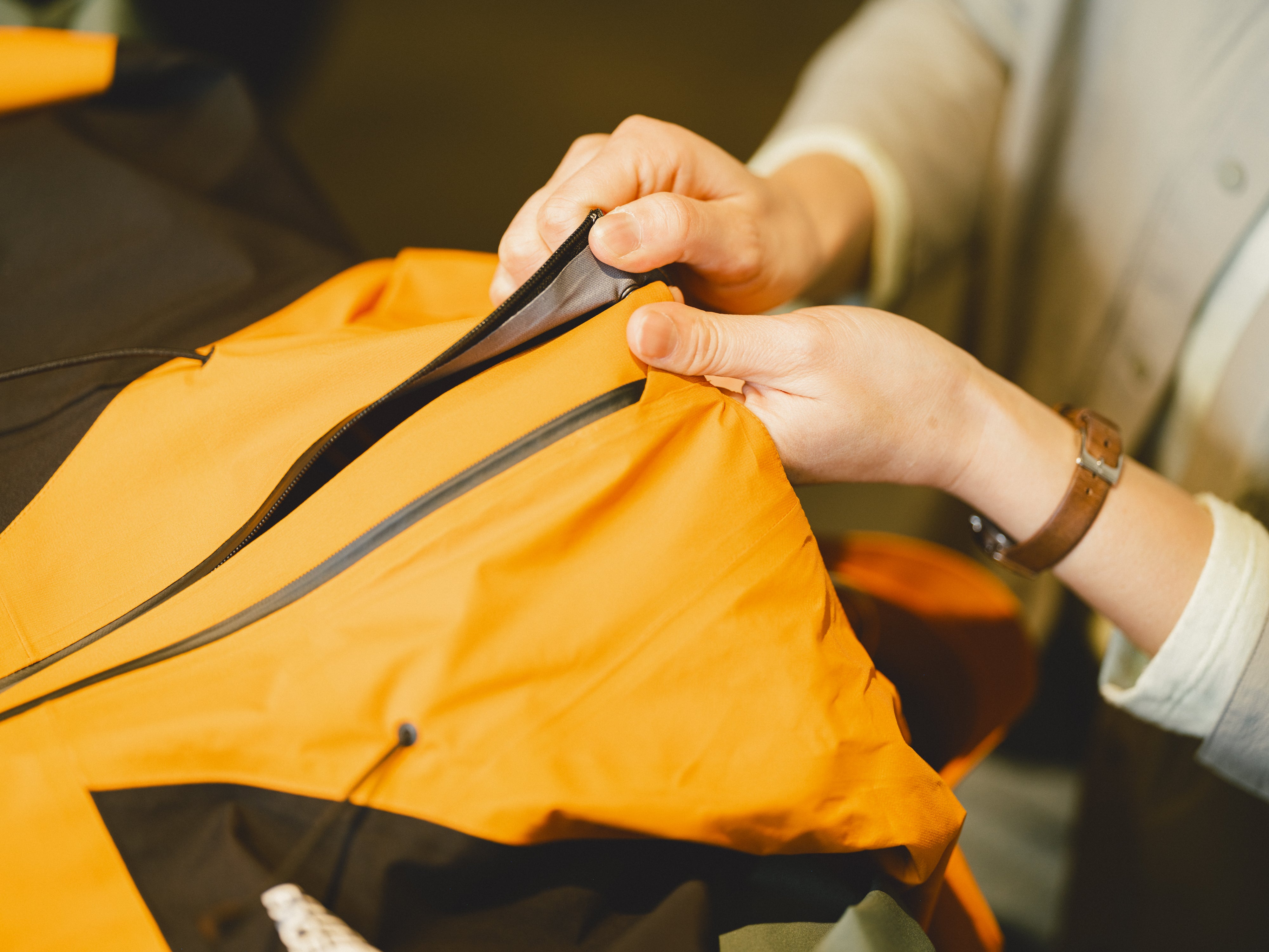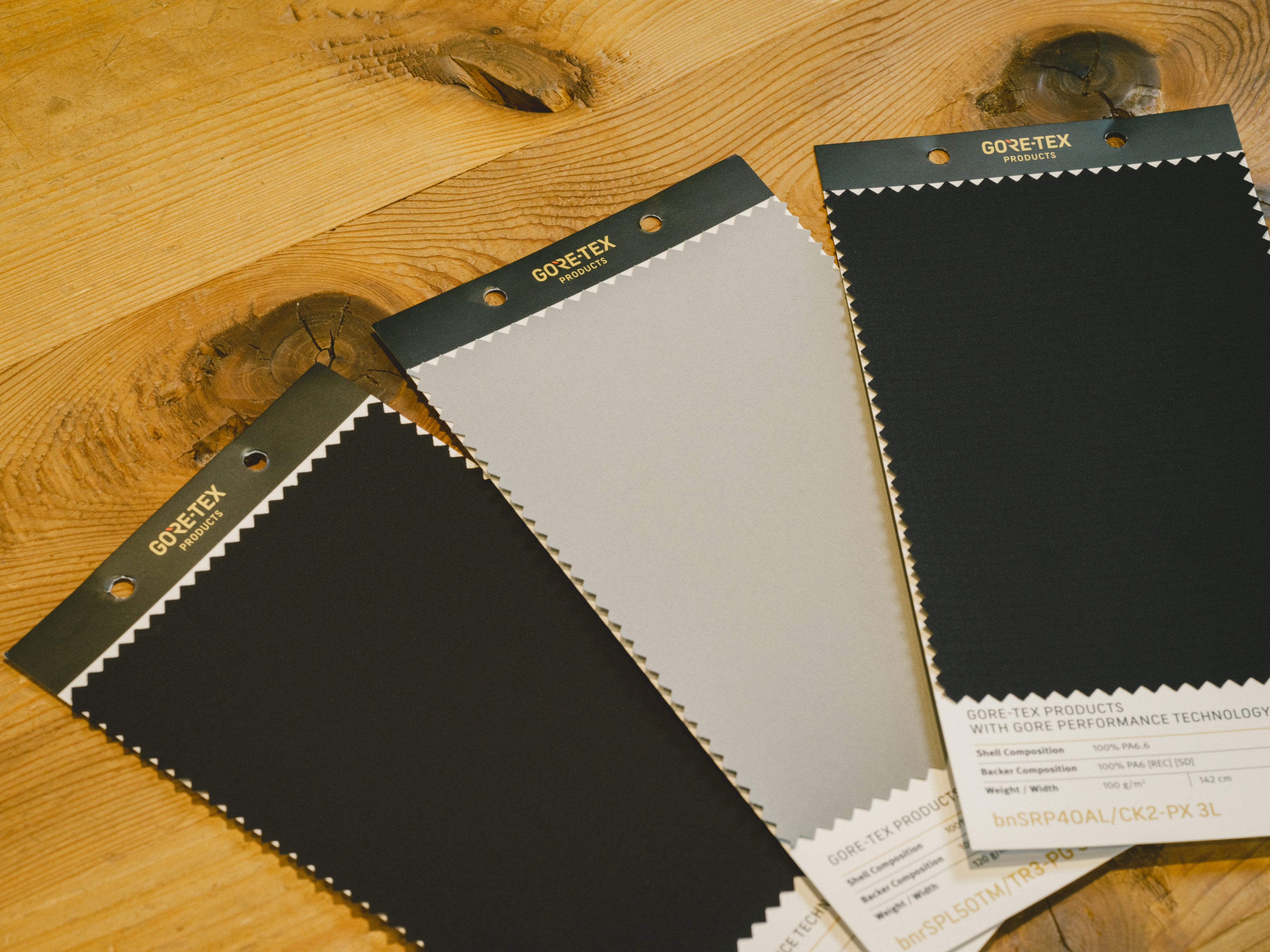 同じくデザイナーの石原彰乃さんは、「GORE‑TEX ファブリクスは何度も試験を重ねたうえで製品化されているので、透湿防水性の数値はもちろん、メンブレンと組み合わせる素材の相性や発色も含めて安定感があります。ゆえに量産してもトラブルが少なく、思い通りの製品をつくることができるんです」