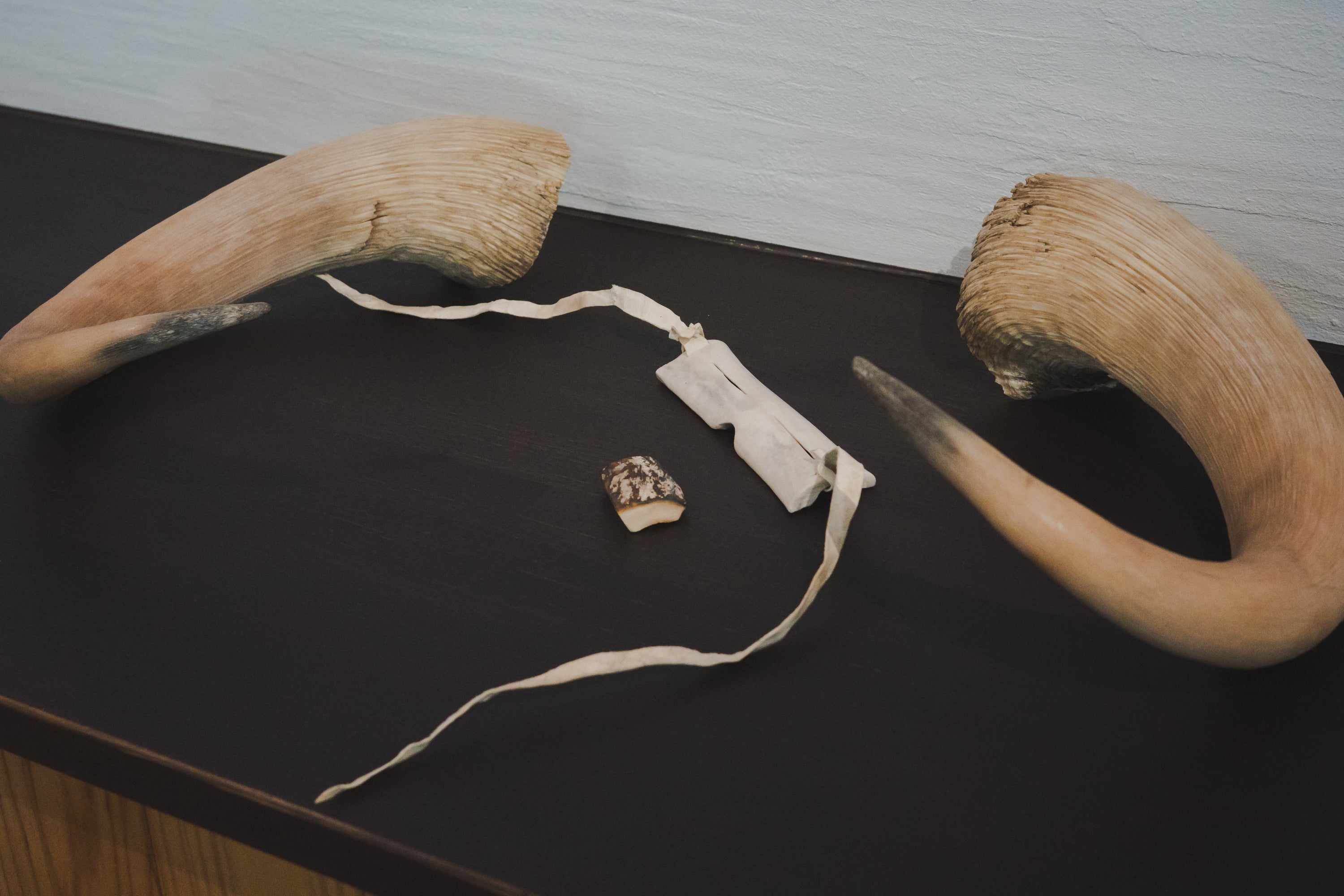 かつてのイヌイットが使用した遮光メガネとジャコウ牛の角