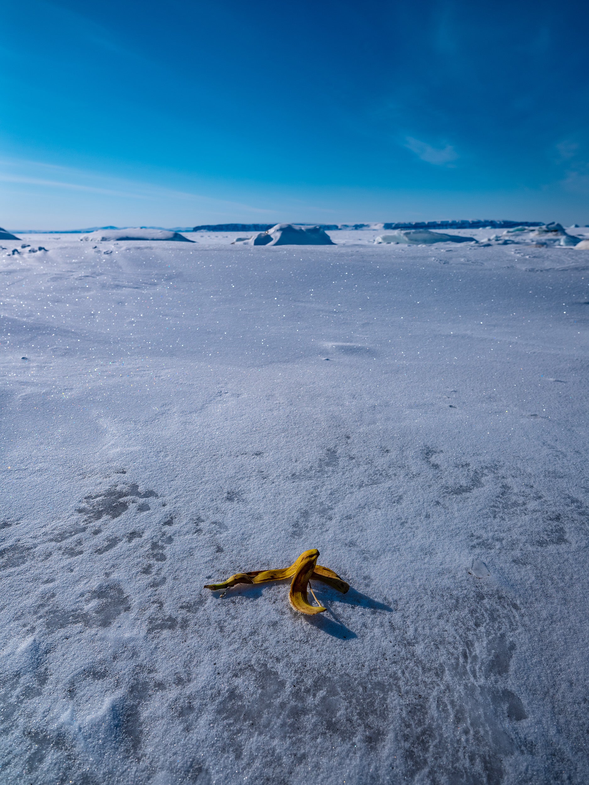 南国から持ち込まれたバナナの皮。氷の大地では土に還ることはない。