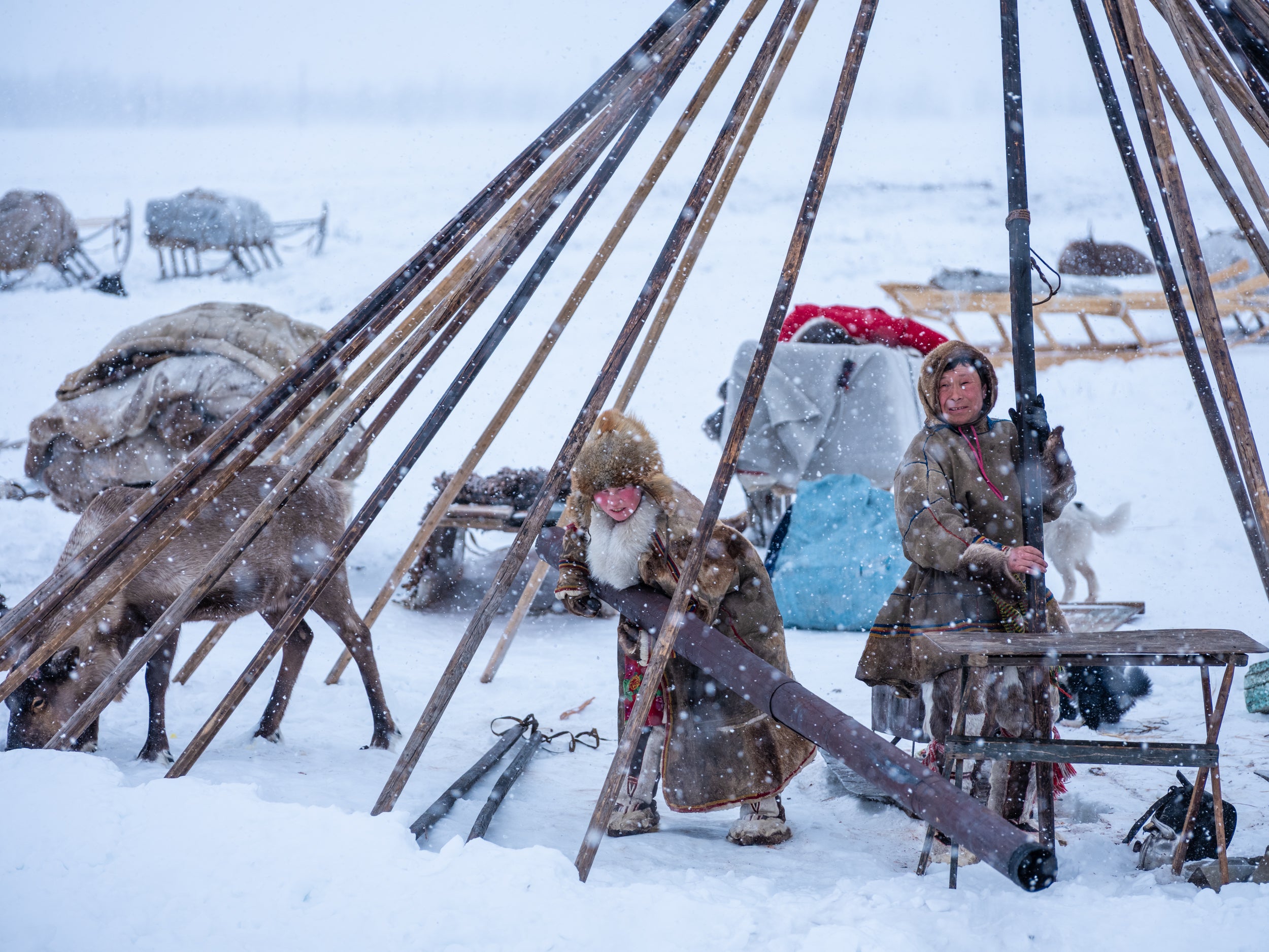 ロシア北部、特にシベリアの北極圏に広がるツンドラ地帯に暮らす先住民族ネネツ。主にトナカイ遊牧を生業とし、厳しい北極圏の自然環境に適応した独自の文化や伝統を守っている。