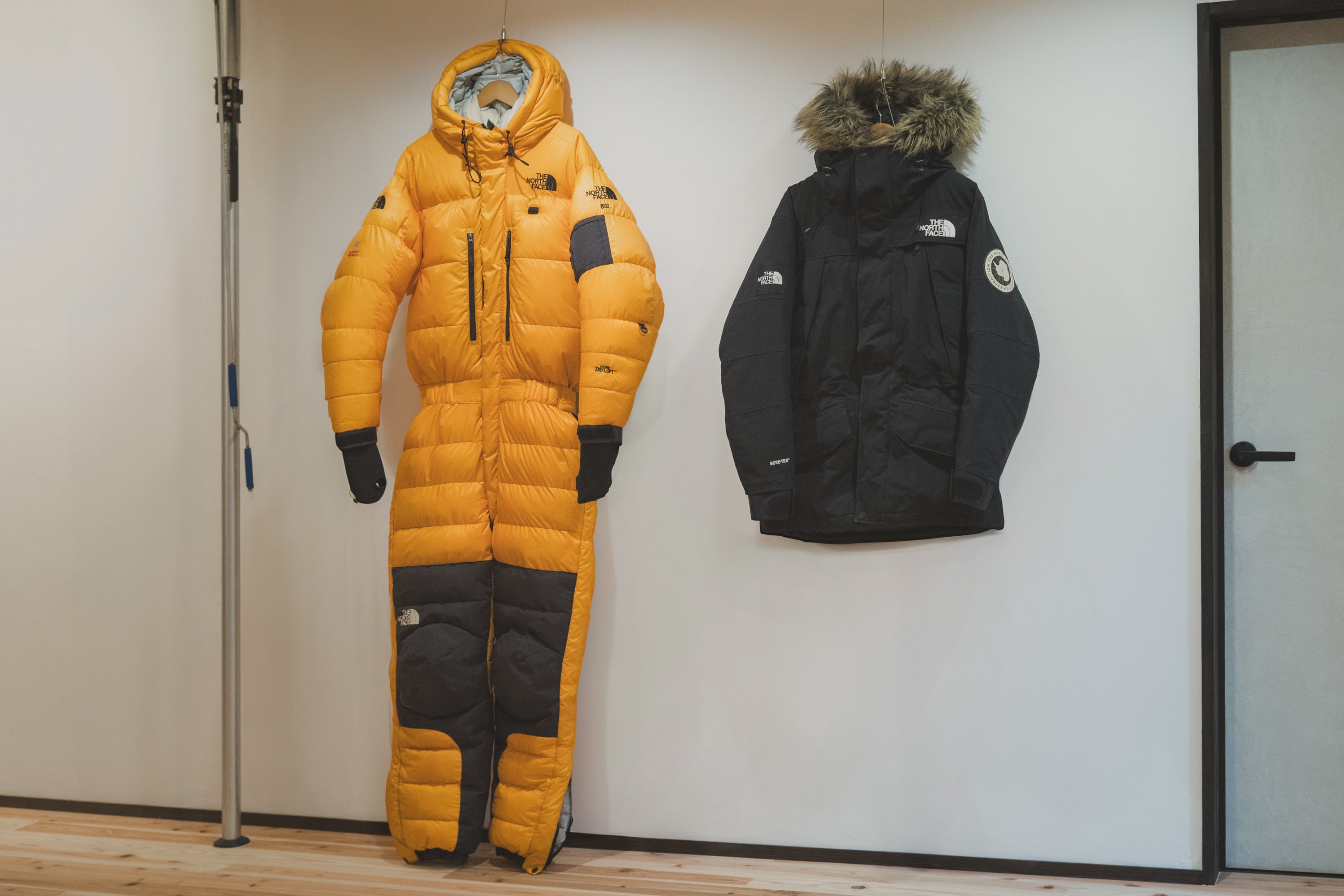 GORE DRYLOFT®素材のヒマラヤンスーツと、南極大陸横断国際隊のメンバーが着用していたウェアをもとに作られたGORE-TEX プロダクトのアンタークティカ パーカ。ともに『THE NORTH FACE』