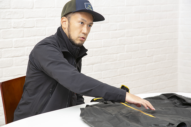 「GORE-TEXの開発チームは、全てをゼロベースから考える『デザイン フロム スクラッチ』というアークテリクスの思想を理解し、何十年も前から我々の意見を積極的に開発に活かしてくれました。シェイクドライおいても同様で、お互いのリスペクトと、数え切れないトライアル&エラーがあったからこそ、ノーバン SL フーディが完成したと言えます」