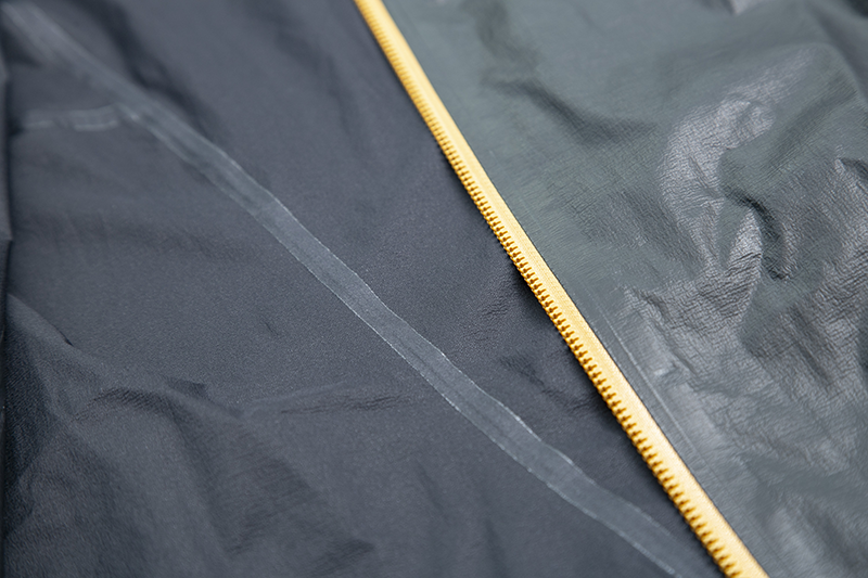 表生地を取り払い、メンブレンを外側に露出させることで、優れた防水透湿性と軽量を両立させた「ゴアテックス シェイクドライ™」。それ自体も軽い素材ではありますが、ただ採用するだけでは120gという軽さは実現できません。その要となるのが、アークテリクスらしい「哲学」と「技術」です。