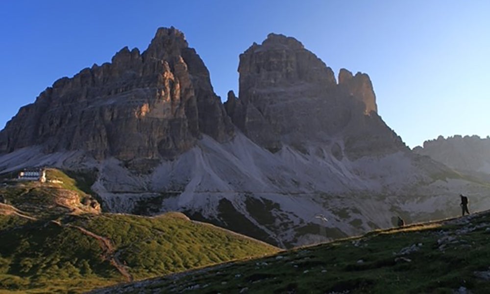 (위)(아래)아침 햇살을 품은 아우론조 산장과 트리치메 남벽