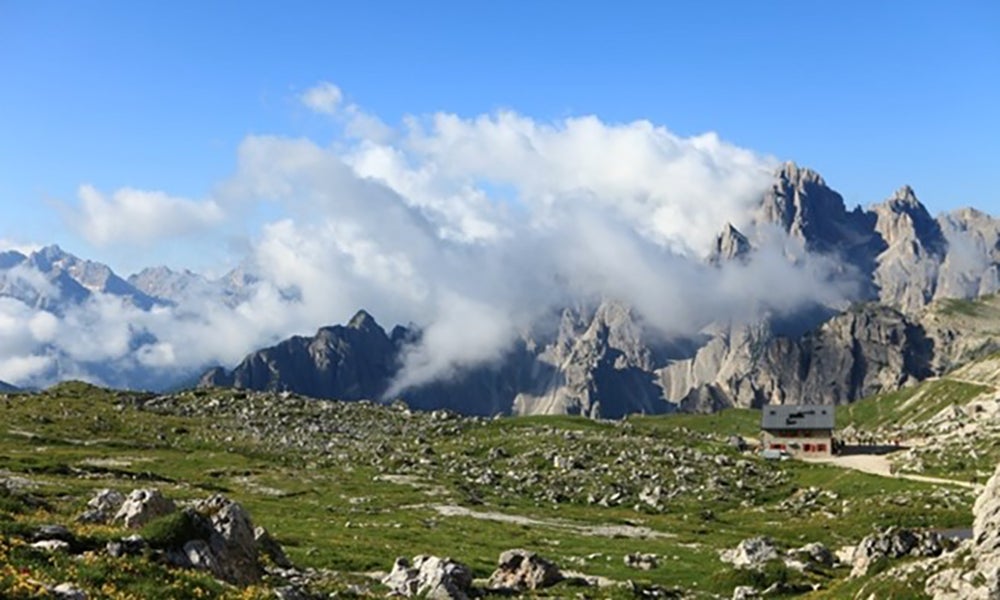 구름에 둘러싸인 카디니 디 미주리나 산군과 라바레도 산장