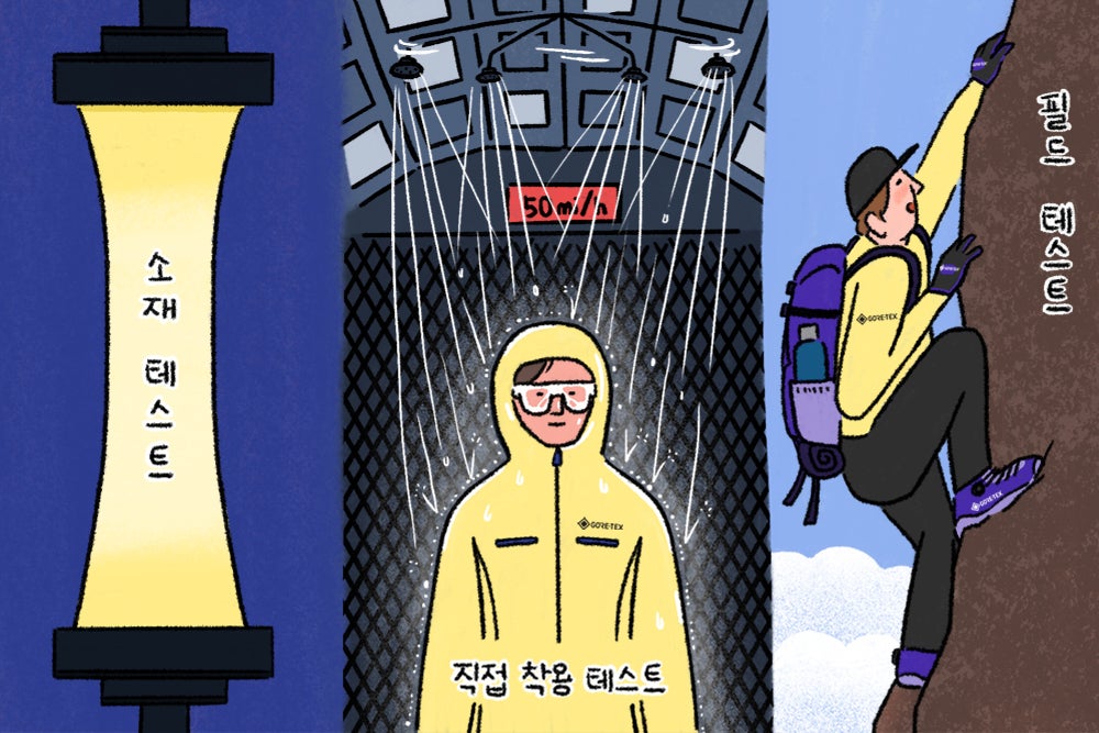 고어텍스 제품이 지닌 최고 성능을 위해서는 까다로운 테스트를 모두 통과해야 합니다. 고어텍스 연구소는 아주 엄격하고 세밀하게, 고어텍스의 모든 제품을 시험하고 또 시험합니다. 테스트는 크게 세 단계에 걸쳐 실시됩니다.